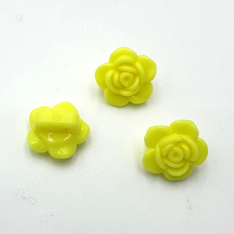 Acryl kraal bloem Geel 7x14mm, de kraal heeft 2 rijggaatjes.